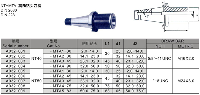 NT-MTA莫氏鉆頭刀柄