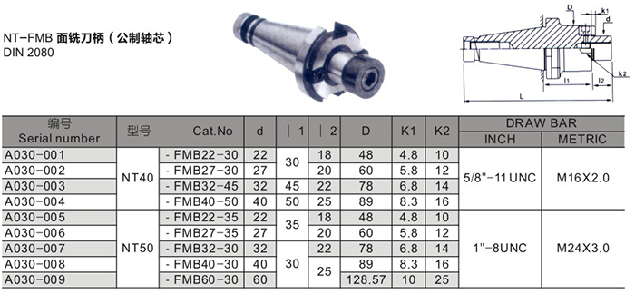 NT-FMB面銑刀柄(公制軸芯)