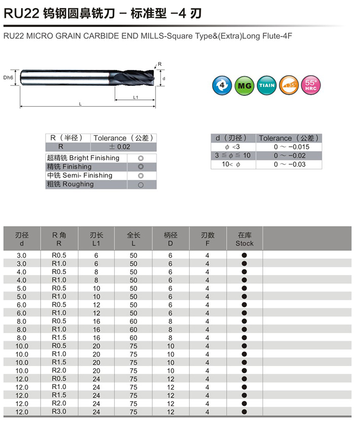 蘇瑞(常州)精密工具有限公司主營RU22鎢鋼圓鼻銑刀-標準型-4刃,提供RU22鎢鋼圓鼻銑刀-標準型-4刃圖片了解,找RU22鎢鋼圓鼻銑刀-標準型-4刃制作廠家就找 蘇瑞(常州)精密工具有限公司