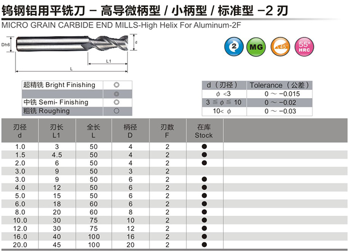 鎢鋼鋁用平銑刀-高導微型柄/小柄型/標準型-2刃