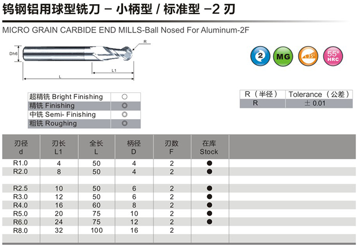 鎢鋼鋁用平銑刀-小柄型/標(biāo)準(zhǔn)型-2刃
