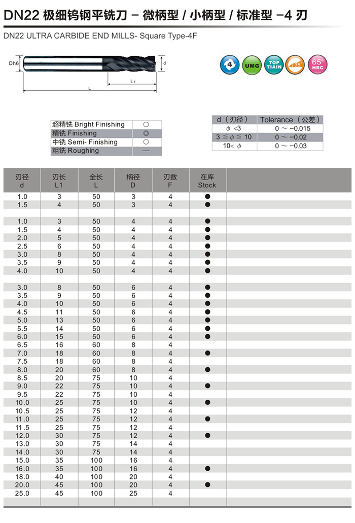 DN22極細鎢鋼平銑刀-微柄型/小柄型/標準型-4刃