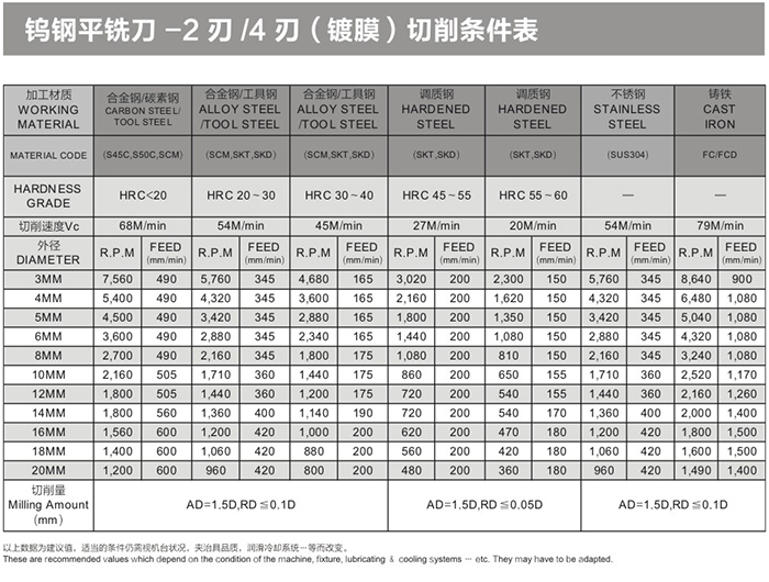 鎢鋼平銑刀-2刃/4刃(鍍膜)